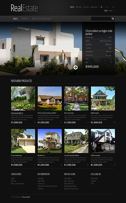 Black Real Estate PrestaShop Template by Hermes PrestaShop TMT