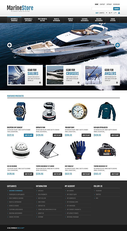 Template Name: Responsive Marine Store Item number: 45551 Template Type: PrestaShop Author: Hermes Downloads: 0 PrestaShop Engine: 1.5.4.1 PrestaShop Compatibility: 1.5.x The template is fully compatible with PrestaShop 1.5.x. But sample data SQL files are only compatible with the exact version of PrestaShop Engine it was developed for. ...