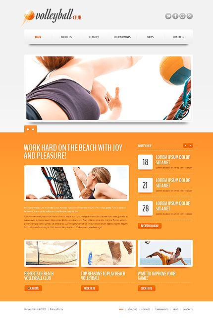 White & Orange Volleyball Drupal Theme by Elza Drupal TMT