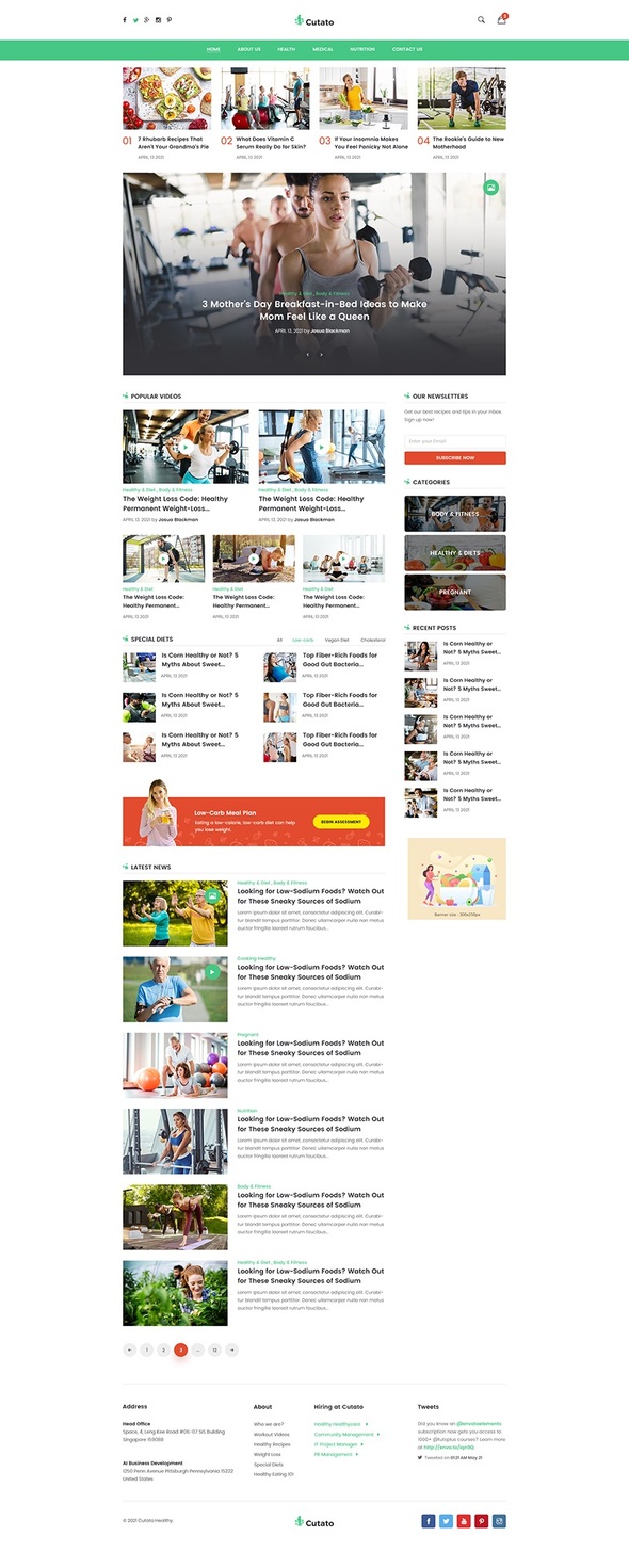 Cutato - Healthy Lifestyle Magazine amp Blog Elementor Template Kit TFx