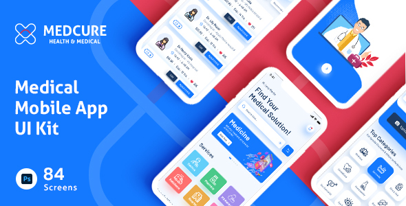 MEDCURE Medical App UI Kit for Photoshop TFx
