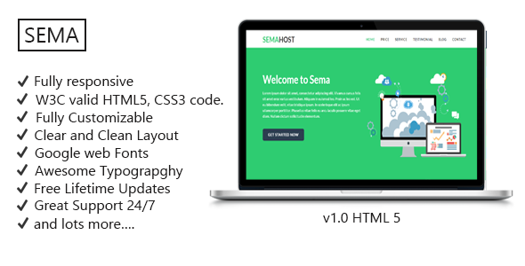 SemaHost - One Page Hosting Landing page Template TFx