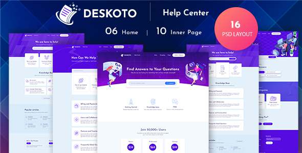 Deskoto - HelpDesk and Knowledge Base PSD Template TFx