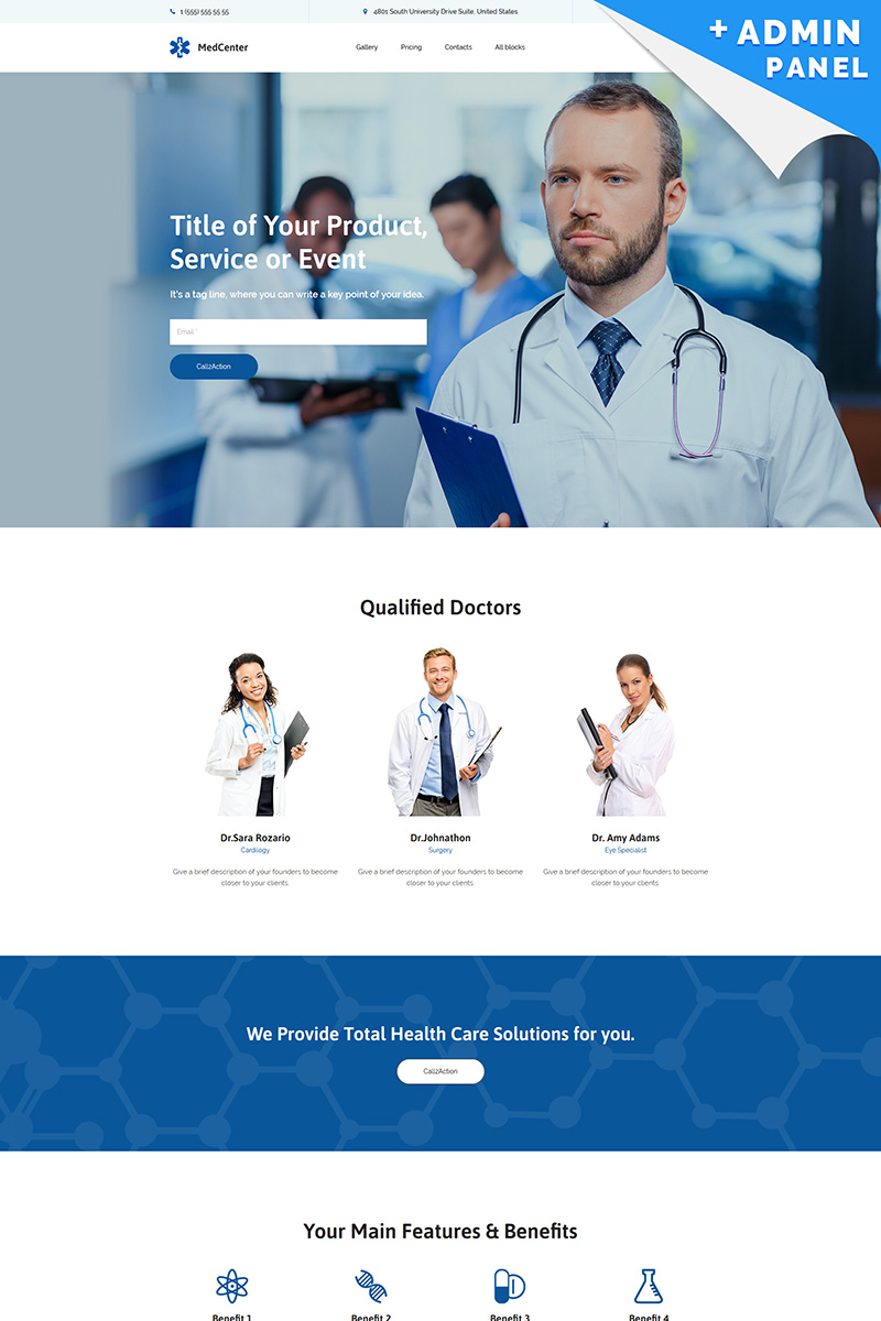 MedCenter MotoCMS 3 Landing Page Template TMT Tim Dax
