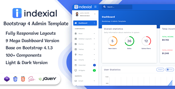 Indexial Bootstrap 4 Admin Dashboard TFx