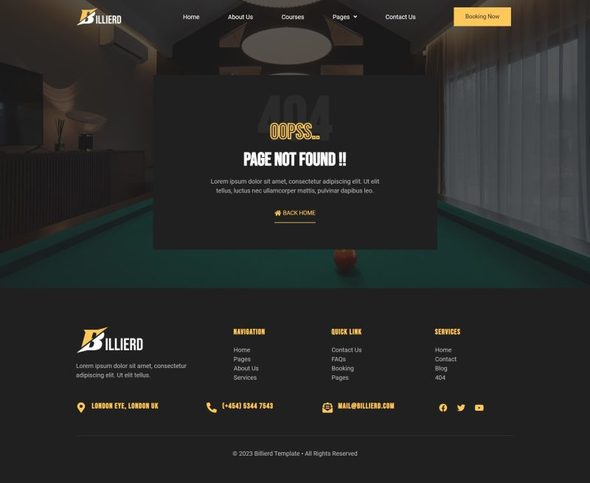 Billierd - Billiard School amp Sport Club Elementor Template Kit TFx