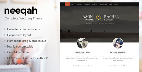 Neeqah - Responsive Wedding WordPress Theme TFx