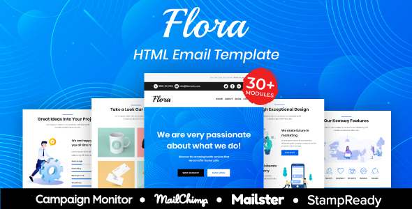 Flora - Multipurpose Responsive Email Template 30 Modules Mailchimp TFx