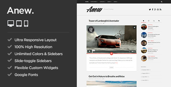 Anew - Responsive WordPress Tumblog Theme TFx