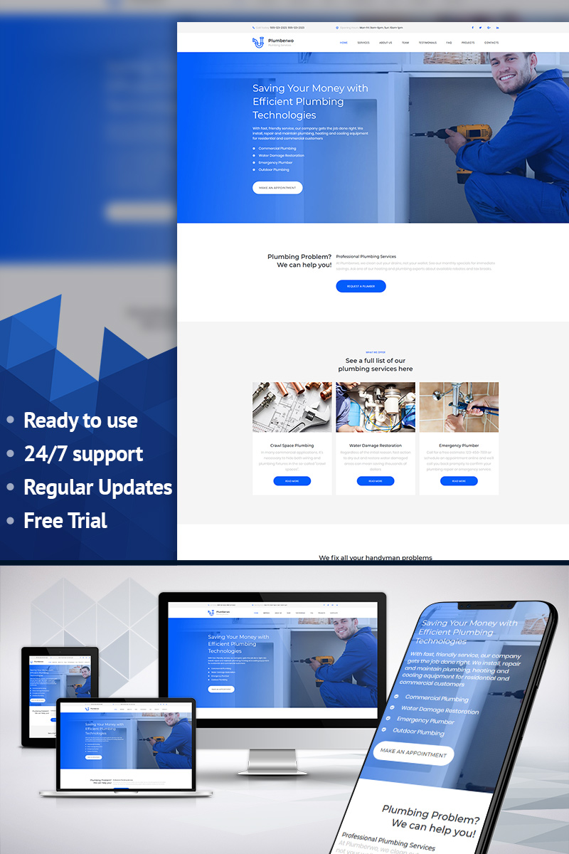 Plumberwo - Premium Moto CMS 3 Template TMT Leigh Davis
