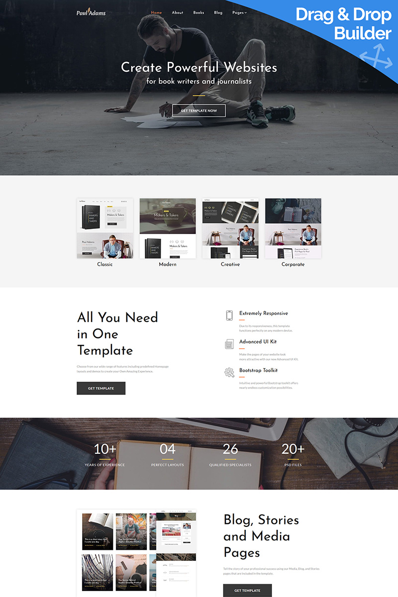 Writer/Author Responsive Moto CMS 3 Template TMT Theodoric Ash
