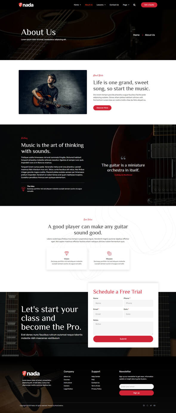 Nada - Guitar Lessons amp Courses Elementor Template Kit TFx