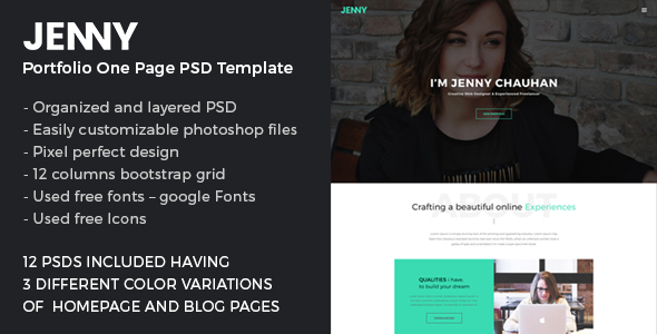 JENNY - Portfolio One Page PSD Template - Portfolio Creative TFx Yuuta Carleton