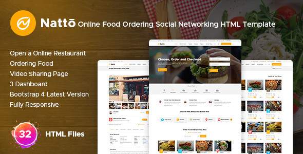 Natto - Online Food Ordering Social Networking Html Template TFx Arnold Cavan