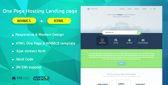 CabHost HTML One Page Hosting Landing page & WHMCS TFx Presley Darin