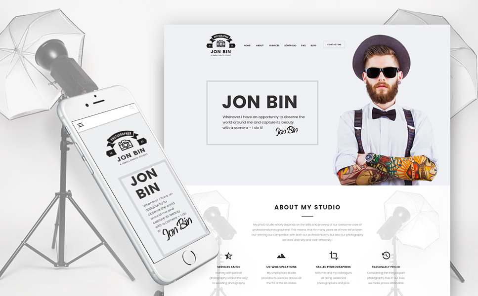 One Page Freelancer Photographer Portfolio WordPress Theme TMT Irving Koby