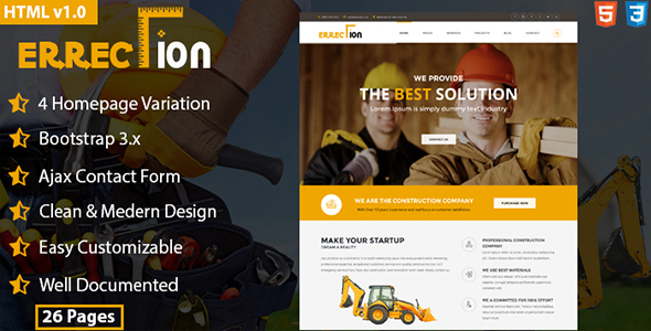 Erraction - Construction Business HTML5 Template TFx