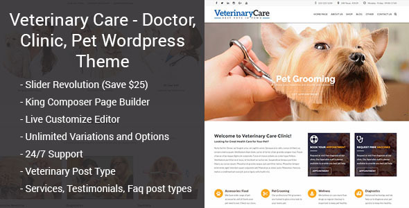 Veterinary Care - Doctor, Clinic, Pet WordPress Theme TFx