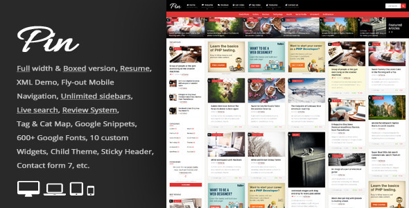 Pin = Grid Personal Magazine / CV Resume WP Theme TFx