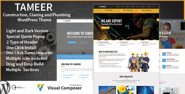 Tameer Construction / Cleaning / Plumbing Multipurpose WordPress Theme TFx