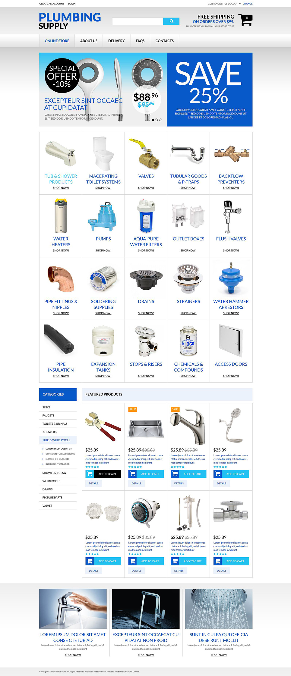 Durable Plumbing Fixtures VirtueMart Template TMT