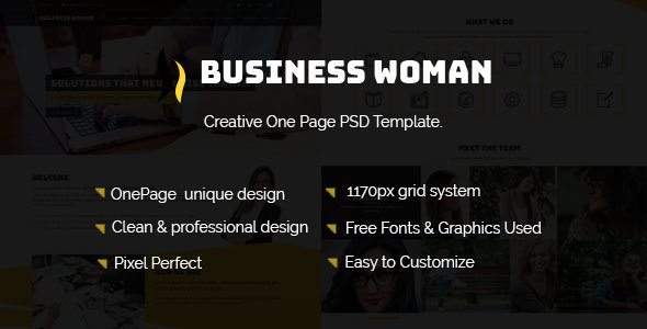 Business Woman– Creative One Page PSD Template. TFx Sheard Herbie
