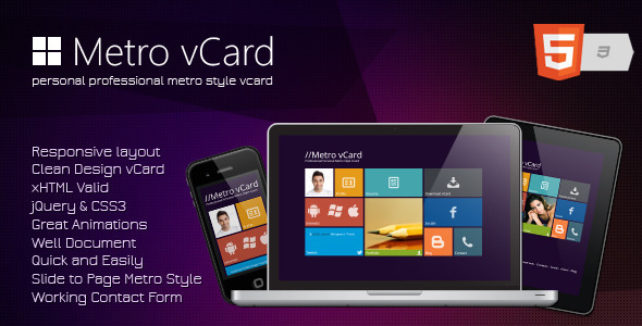 Metro vCard - Responsive Metro Style vCard Template Personal