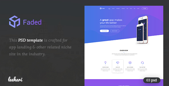Faded - App Landing PSD Template TFx