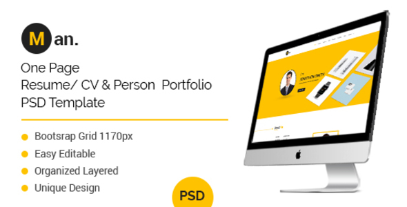 Man- One Page Personal Resume/CV Template - PSD Templates TFx Ryouta Blake