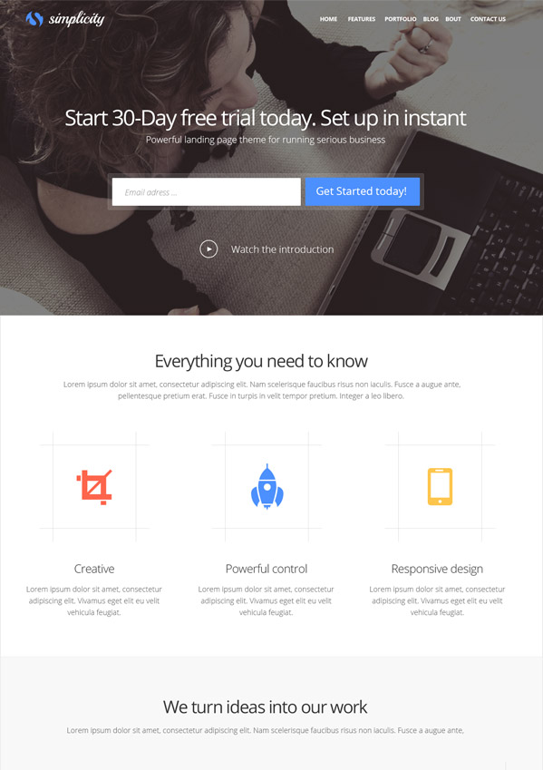 Simplicity Responsive WordPress Theme for Startup Business
