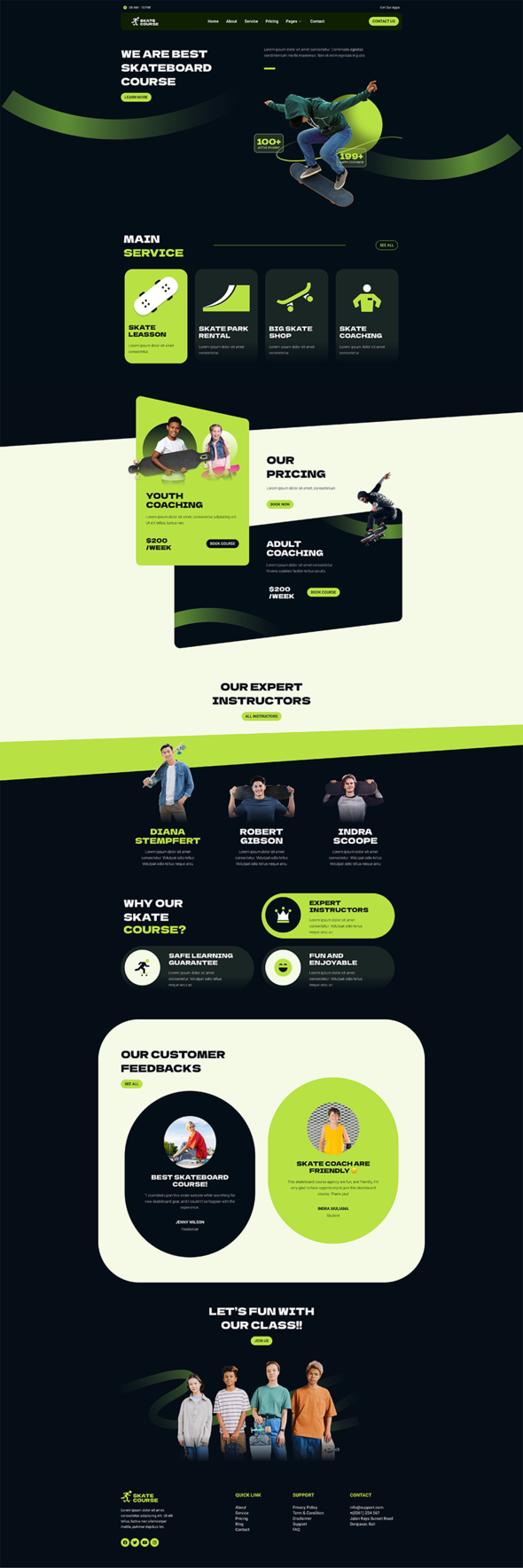 Skatecourse - Skateboard Lesson Elementor Kit TFx