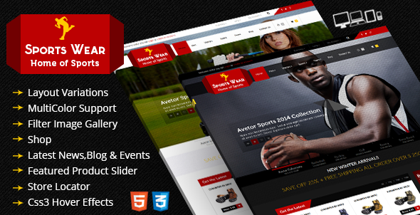 Sports Store Responsive Ecommerce HTML5 Theme TFx