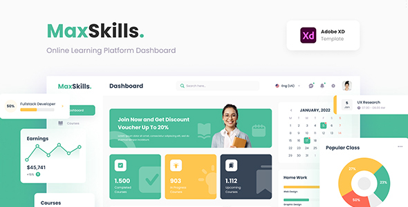 MaxSkills - Online Learning Platform Dashboard Adobe XD TFx