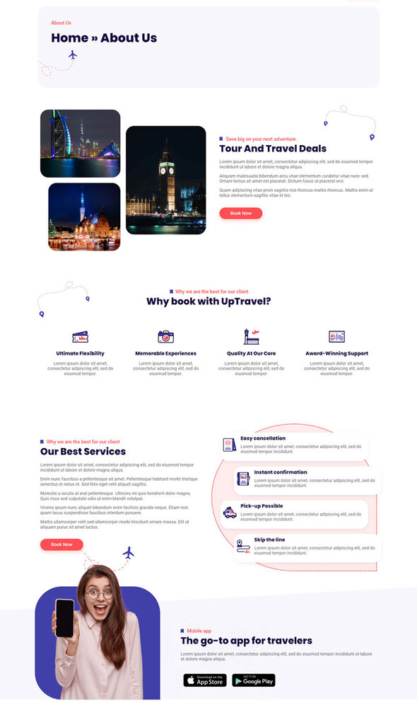 UpTravel - Travel amp Tour Agency Elementor Template Kit TFx