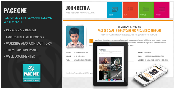 Page One - Responsive Vcard CV Resume WP Theme TForest