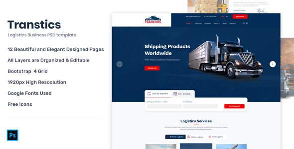 Transtics - Transportation & Logistics Business PSD Template TFx Wiley Dale