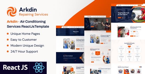Arkdin Air Conditioning Services ReactJs Template TFx