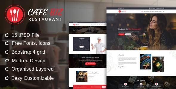 Cafe Biz | Restaurant & Food PSD Template TFx Kingston Hervey