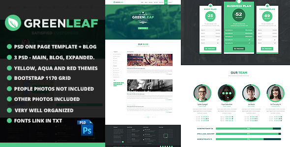 GreenLeaf One Page Web + Blog PSD Template TForest