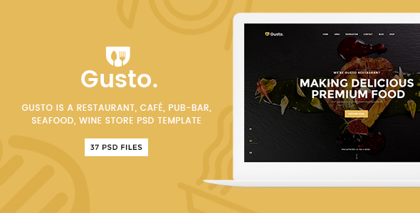 Gusto - Restaurant, Café, Bar, Seafood Restaurant PSD template TFx