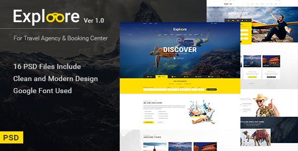 EXPLOORE - Travel, Exploration, Booking PSD Template TFx
