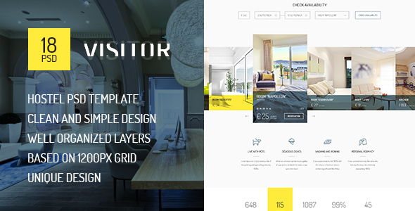 Visitor — Online Hostel/Hotel Booking PSD Template TFx