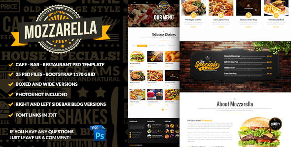 Mozzarella Cafe Bar PSD Template TFx