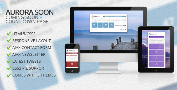Aurora Soon - Coming Soon / Countdown Page Template Specialty Page