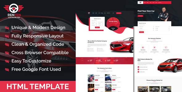 Renten - Car Rental Service HTML Template TFx Waylon Joss