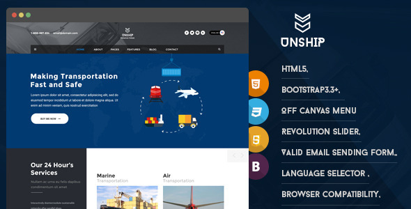 Unship - Transport HTML5 Responsive Template TFx