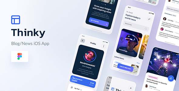 Thinky - Blog News iOS App Design Figma Template TFx