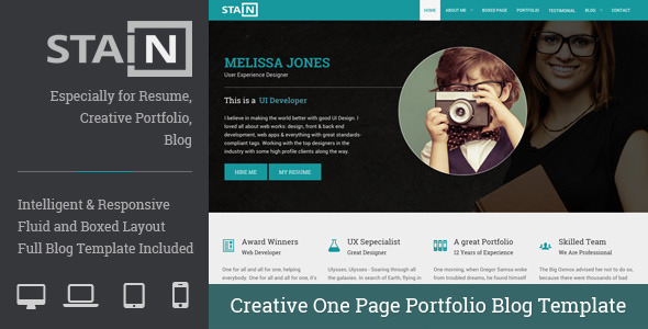 Stain - Creative One Page Portfolio Blog Template TFx