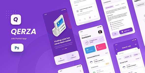 Qerza - Job Portal iOS App Design PSD Template TFx