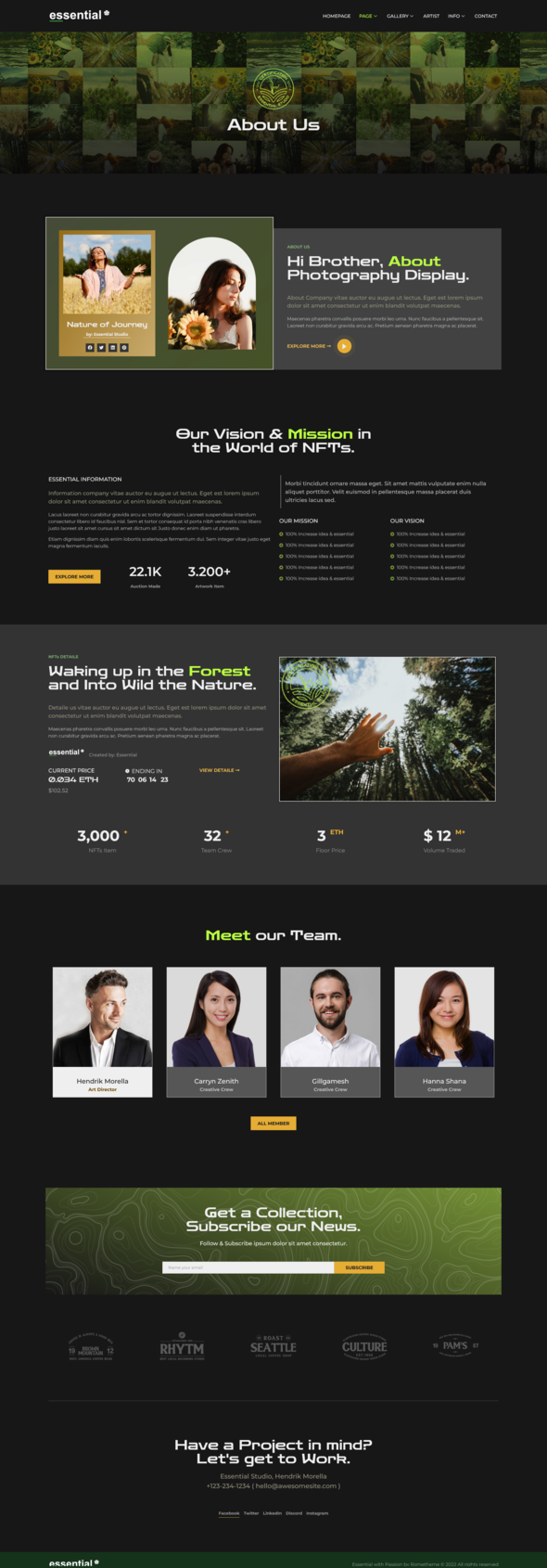 Essential - Photography NFT Portfolio Elementor Template Kit TFx